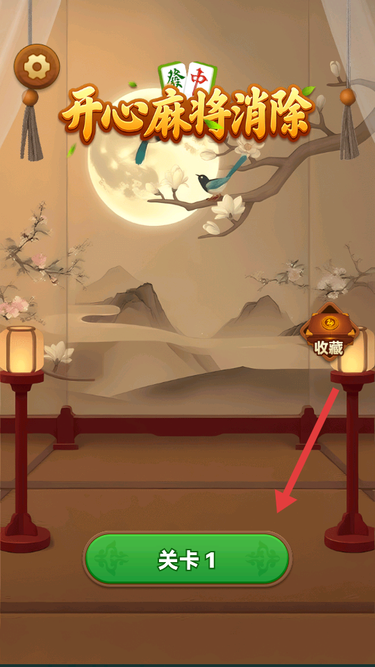 1、主界面找到绿色的【关卡1】按钮,点击它即可进入第一关开始【开心麻将消除】游戏。
