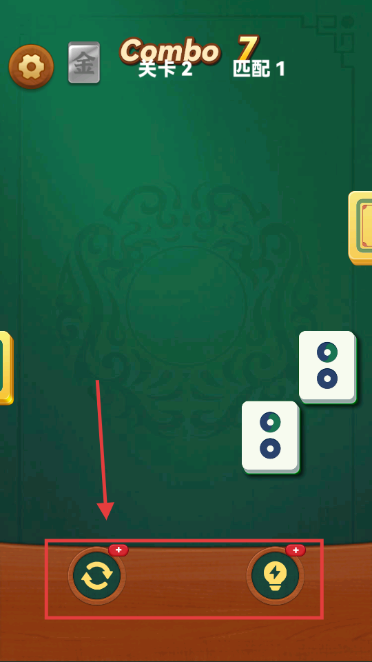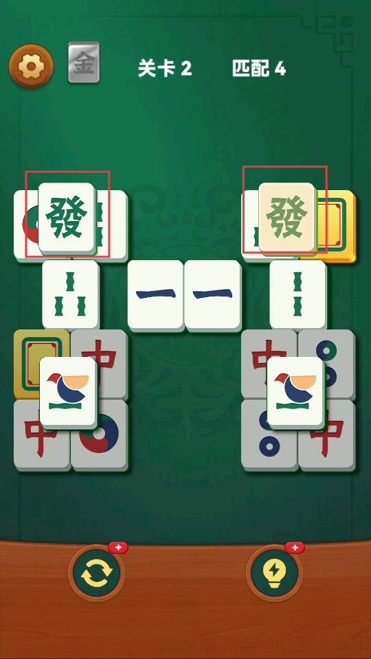 2、关卡2要求【配对4】,先找相同牌比如两个【發】字牌,点击它们进行配对消除。