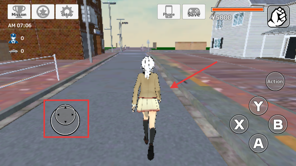 2、通过左下角的方向摇杆,操控角色在城市街道或校园场景中自由移动、探索。