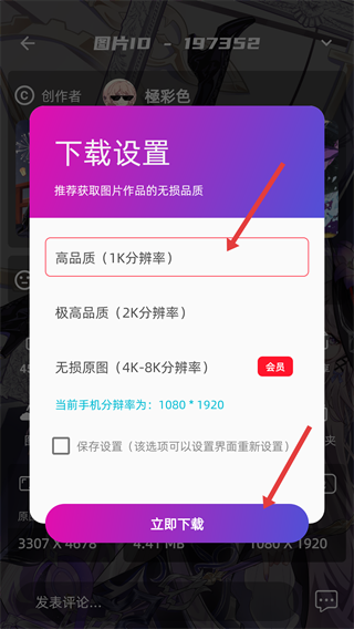 3、选择目标分辨率,再点击【立即下载】按钮。