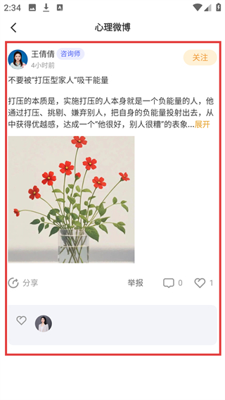3、在咨询师微博列表中,找到微博,点击查看详情。