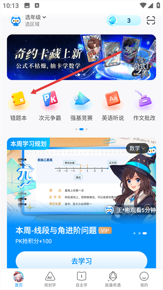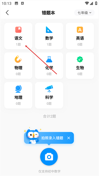 1、在首页找到【错题本】功能入口并点击,进入该功能页面。