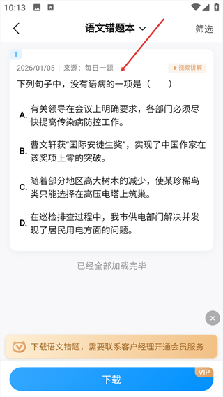 2、点击对应学科分类,进入该学科的错题列表页面。