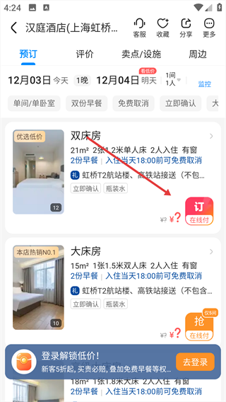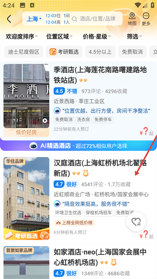 2、在酒店列表页面,选择目标酒店,进入该酒店的预订详情页面。