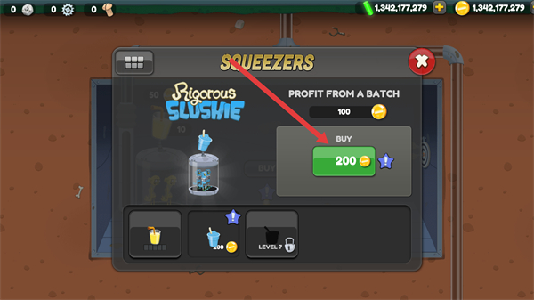3、在榨汁器界面点击200金币对应的选项,完成新榨汁器购买。