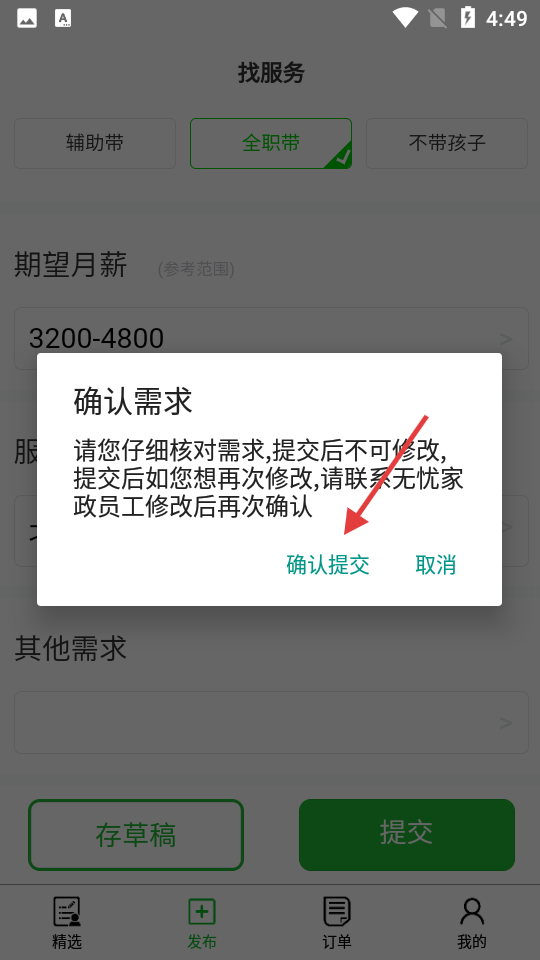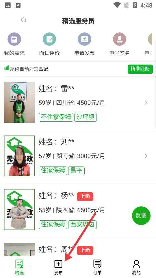 如果对保姆不满意,还可以在平台发起更换保姆的申请