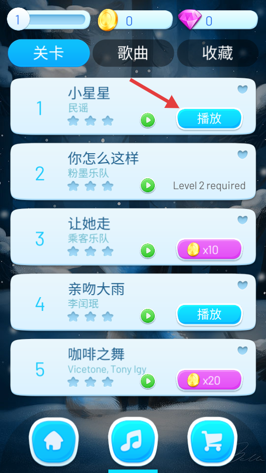 1、在选曲界面,选择想演奏的歌曲,点击“播放”进入演奏环节。