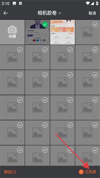 3、选中照片后点击【已完成】,进入图片处理界面。