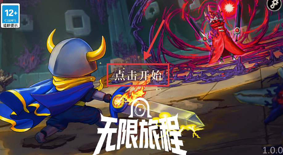 1、进入【无限旅程】游戏,点击【点击开始】按钮,准备迎战前方红袍敌人,开启冒险。