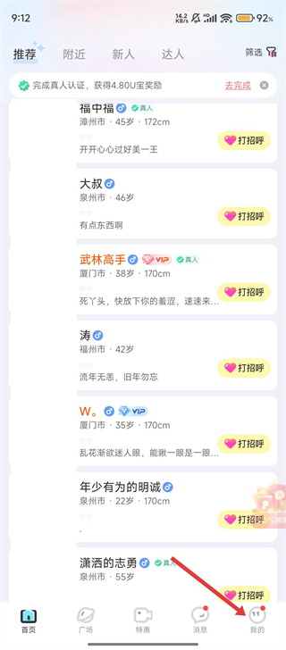 1、进入友趣首页后,点击底部的【我的】选项,为后续联系客服铺垫好啦。