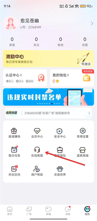 2、在【我的】页面中,找到【在线客服】这个功能入口并点击,就能顺利进入客服的对话界面哦。