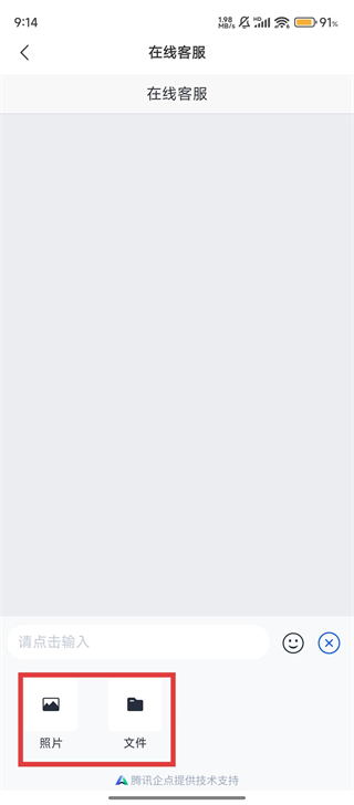 4、在【在线客服】界面,点击输入框旁的+号,就能选择【照片】或【文件】来辅助与人工客服的交流啦。
