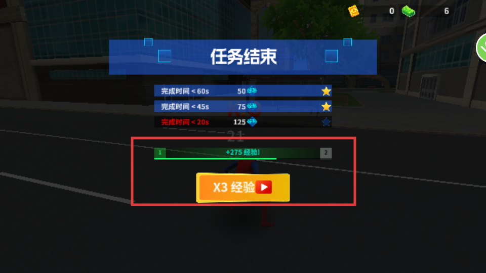 4、任务结束后领取【+275经验】,可点击【X3经验】按钮观看广告获取三倍经验奖励。