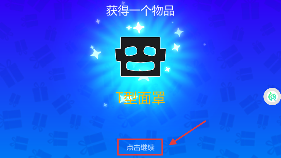 4、获得【T型面罩】后,点击下方的【点击继续】按钮,领取物品并继续游戏。