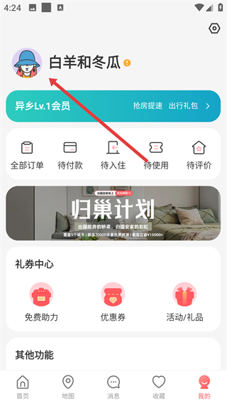 1、打开【异乡好居】软件,点击【我的】,开启修改昵称的操作流程哦。