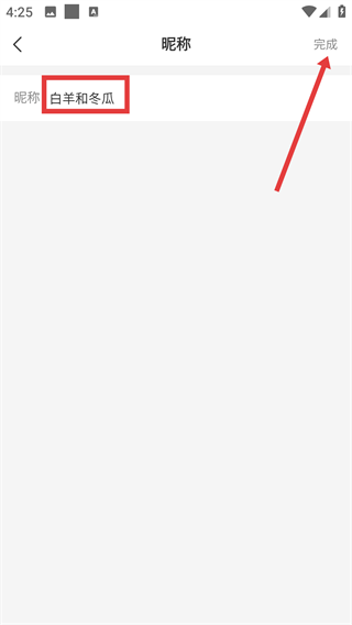 4、在昵称输入框修改名称后,点击【完成】,便成功更改昵称,让账号更具个性啦。