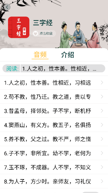 1、朗读功能清晰,点击即可播放标准发音,帮助纠正古文发声与语调。