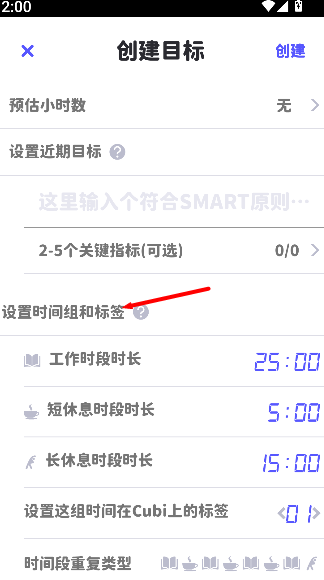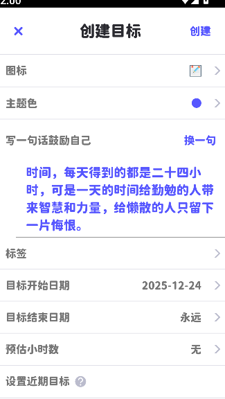2、创建目标并填写相关内容。