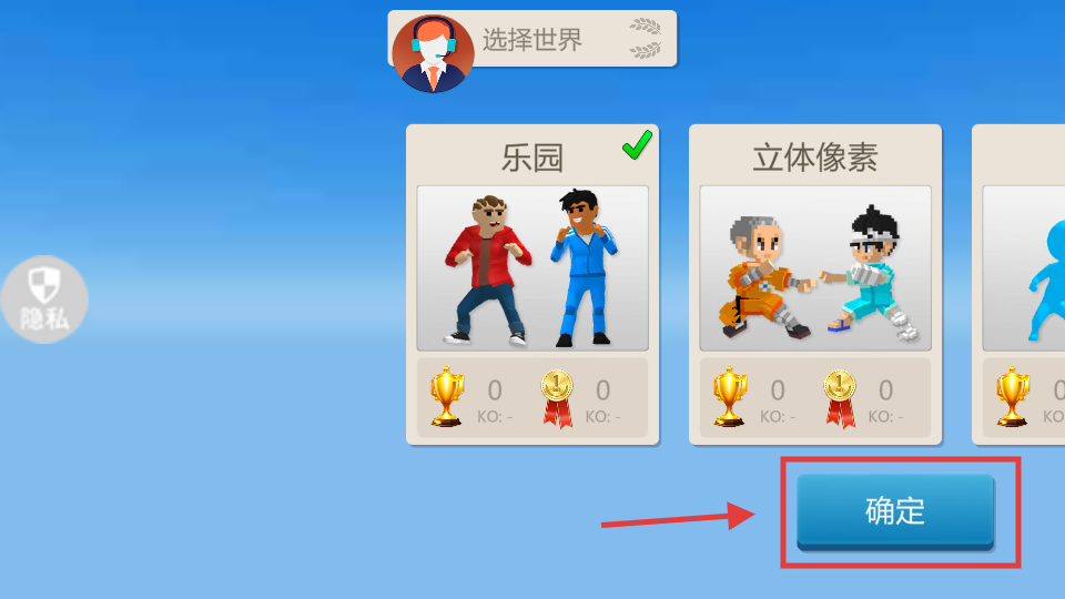 1、选择【乐园】世界后,点击界面右下角的【确定】按钮进入游戏场景,开始战斗准备。