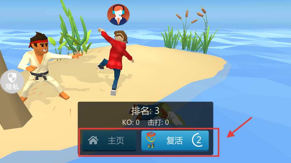 4、被击败后,可消耗【2】个复活道具点击【复活】按钮,重新回到战场继续提升排名。