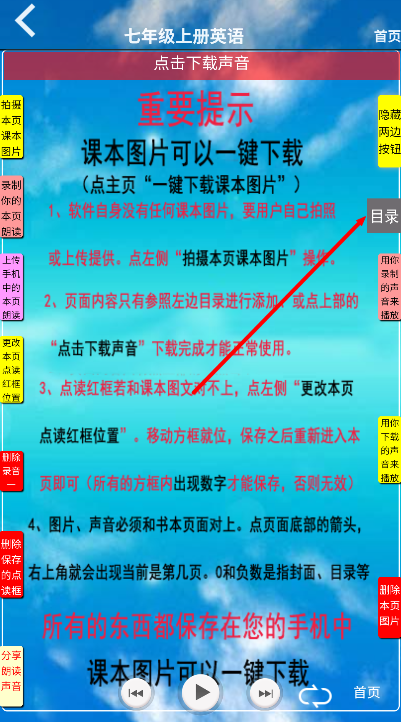 七年级英语点读是一款辅助英语学习的软件,涵盖教材点读、课文朗读、语音跟读与单词学习等功能。支持同步教材内容,帮助学习者巩固课堂知识,提升听力与口语表达。软件内设置精准发音与句子解析功能,可逐句点读、反复练习,让英语学习更高效直观。通过听、读、练的结合方式,帮助掌握语音语调与词汇用法,增强英语综合能力。
