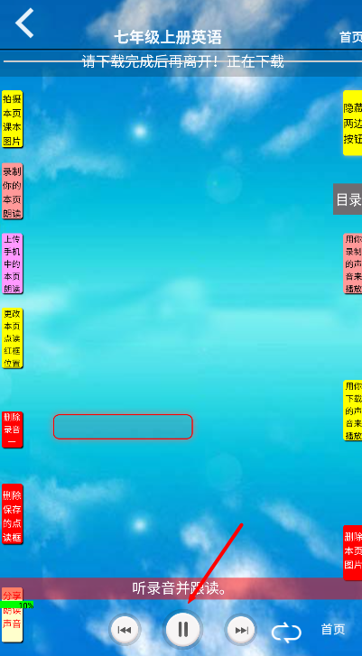 4、点击页面中的“播放”按键,即可听取标准英语录音,可跟随语音进行朗读与模仿,提升听力与口语表达能力。
