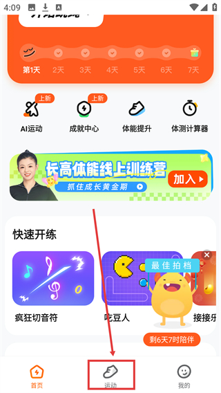 1、在首页点击底部【运动】选项,可进入全部运动页面,查看各类运动项目与分类。