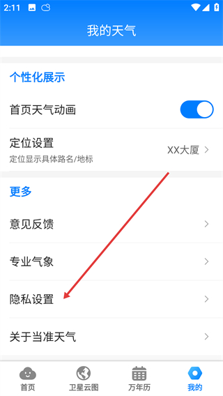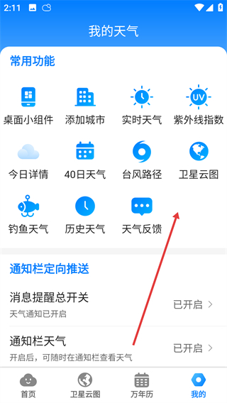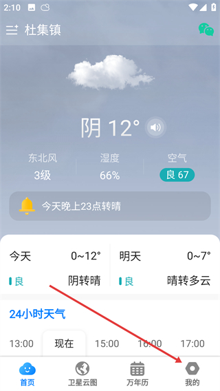 1、打开当准天气APP,点击底部【我的】进入个人页面。