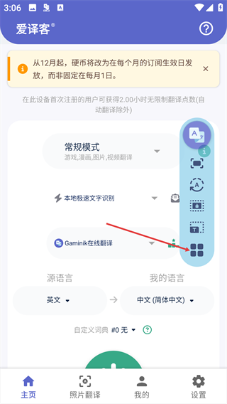-更全能,支持自动翻译,屏幕区域翻译,聊天翻译,照片翻译,翻译历史记录,文字复制,截图等