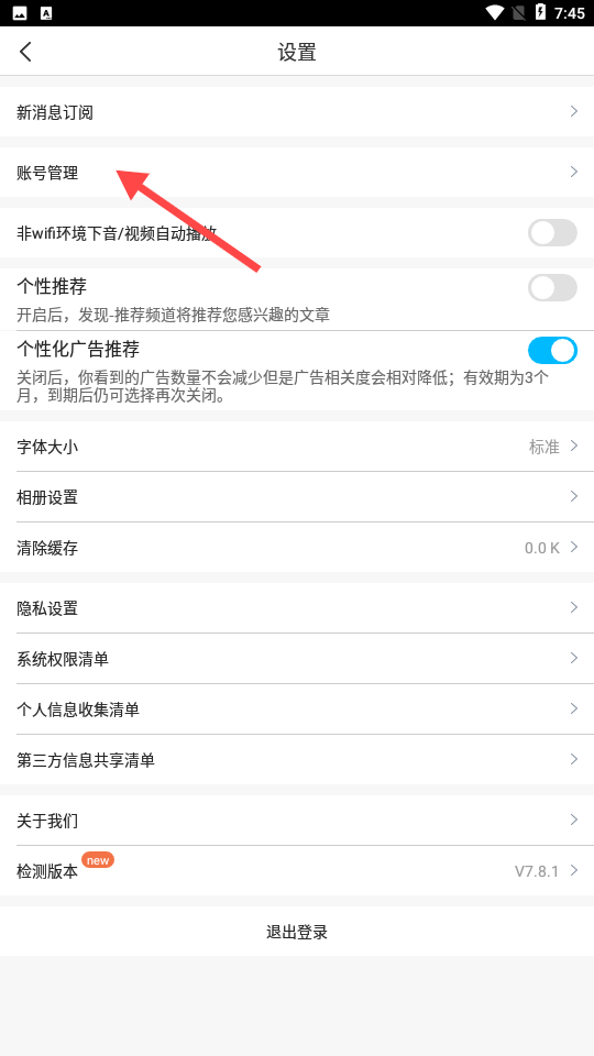 2、在设置界面中,找到并点击【账号管理】选项,进入账号管理页面。