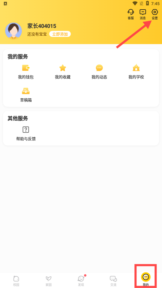 1、进入【我的】页面,点击右上角【设置】选项,进入设置界面。