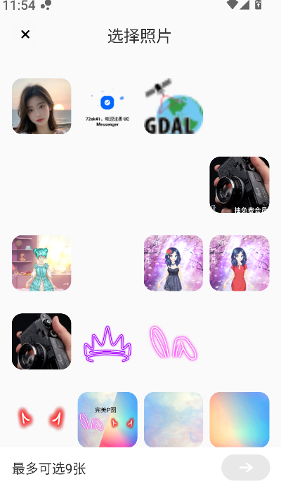 2、在素材选择界面中,可从本地相册中选择照片,最多可一次选择9张图片进行合成。