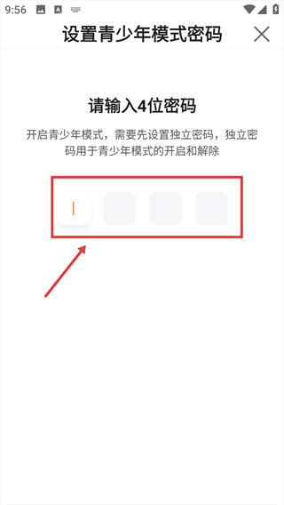4、输入4位独立密码,该密码将用于青少年模式的开启与解除操作。