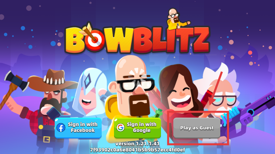 1、选择【Play-as-Guest】可直接进入游戏,无需关联社交账号,快速开启射击体验。