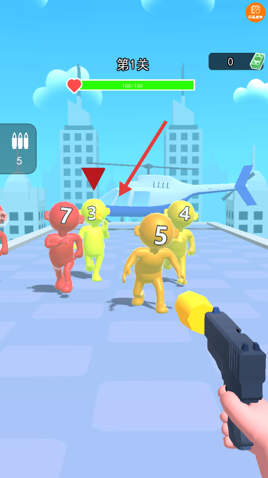 3、攻击带数字的敌人,同时留意直升机的方向。