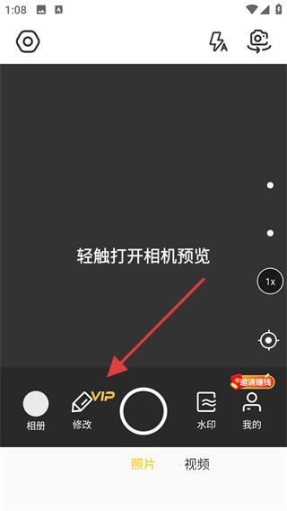 1、在相机界面点击底部【水印】,进入水印设置页面。
