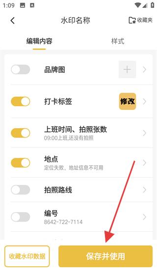 4、返回水印页面后,点击【保存并使用】,即可在拍摄时显示设置好的拍照时间。
