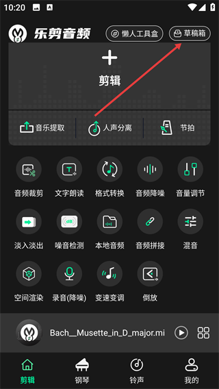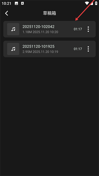 2、在草稿箱页面,选择要导出的音频。