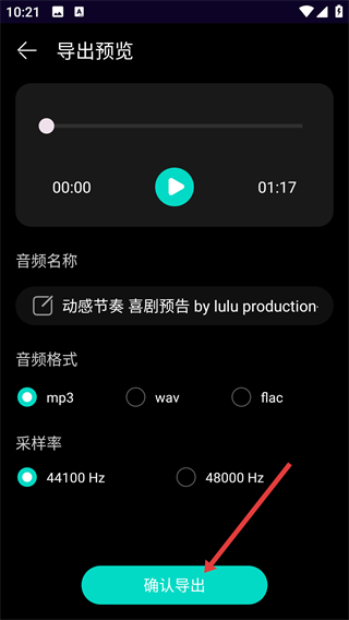 4、确认音频名称,选择目标导出格式,点击“确认导出”完成音频导出。