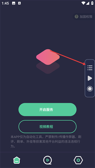 3、打开权限之后,在手机界面中就会出现一个悬浮栏,点击下图中的按钮,即可开启进行录制。