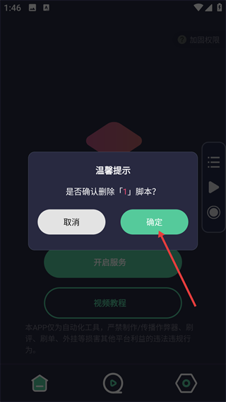 4、在温馨提示弹窗中,点击“确定”按钮,完成该脚本任务的删除操作。