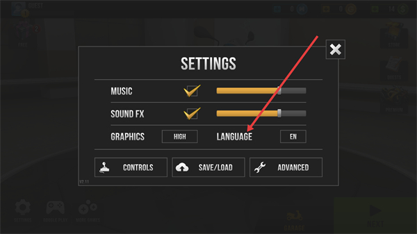 2、进入设置界面,点击红色箭头指向的【LANGUAGE】选项,进入语言选择专属界面。
