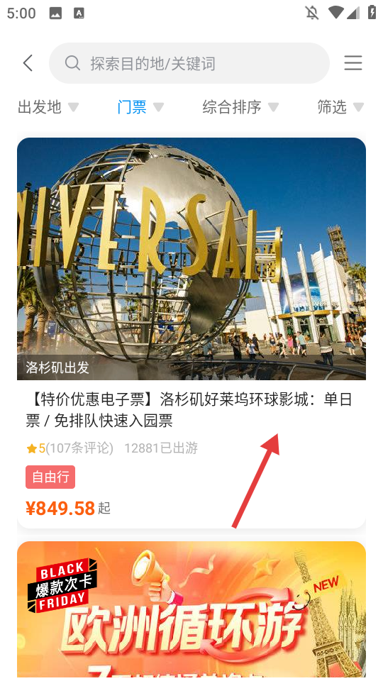 2、选择目标门票,进入详情页。