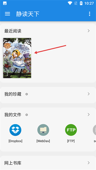 1、进入软件页面这里主页将有自己阅读的记录,点击想要阅读的设置。
