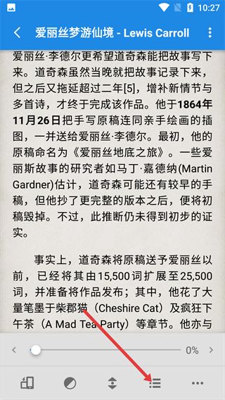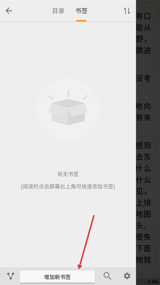 2、点击底部目录按钮,进入书签页面。