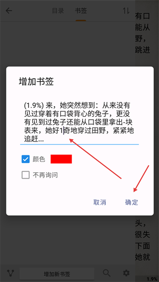 4、可编辑书签内容后点击【确定】,完成书签添加。