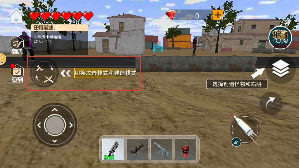 2、利用【切换攻击模式和建造模式】功能,根据战斗场景灵活切换,有效应对敌人进攻。