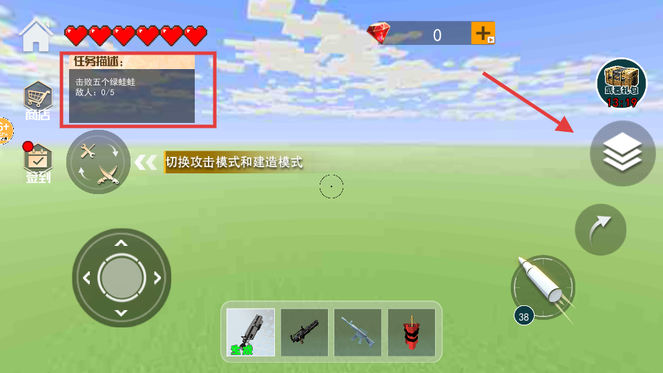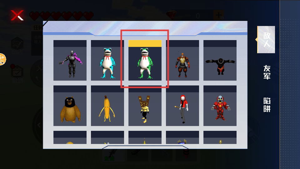 3、关注【任务描述】中击败5个绿蛙蛙的目标,借助创造功能辅助,推进任务进度。