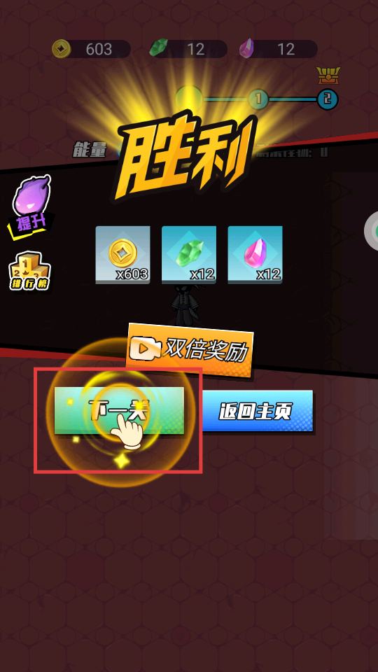 4、通关后点击【下一关】继续冒险,可观看广告领取双倍奖励,积累更多资源。