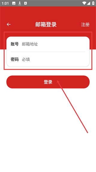 3、在登录方式选择界面,点击【邮箱登录】选项,可进入邮箱登录的信息填写页面。